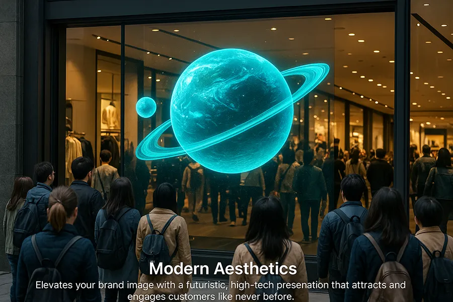Erleben Sie die nächste Generation der visuellen Kommunikation mit SNAPP MEDIA’s holographischem transparentem LED – wo Technologie auf Transparenz trifft.