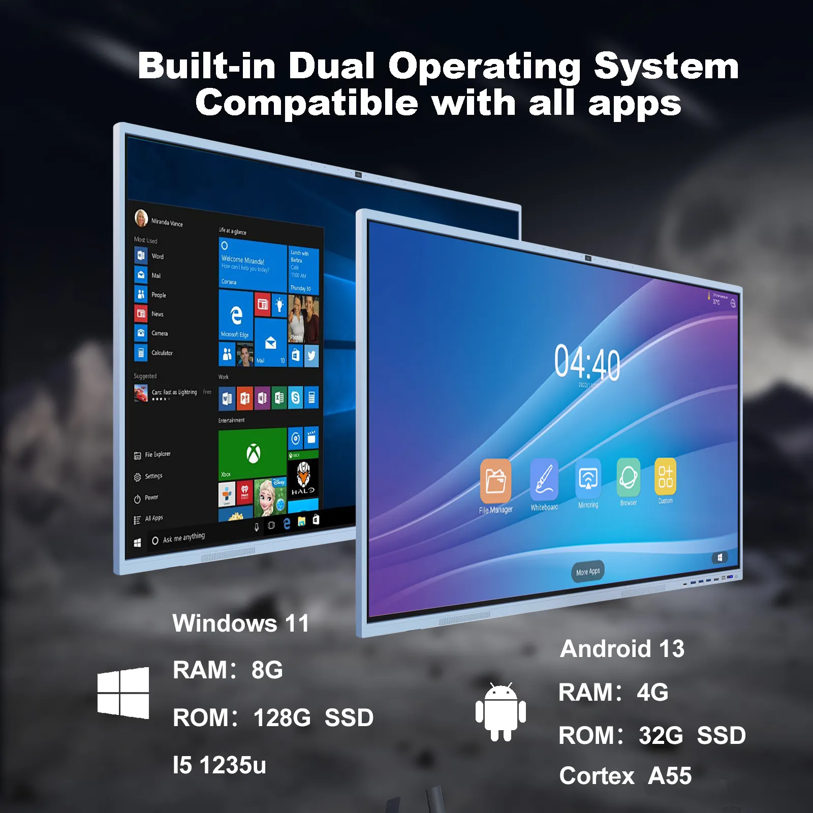 Digitales Smartboard mit dualem Betriebssystem (Windows & Android)